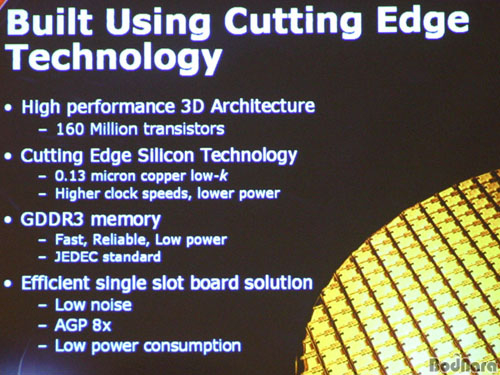 Æ®·£Áö½ºÅÍ·Î ±¸¼ºµÇ¾î ÀÖÀ¸¸ç 0.13 Micron Low-k±â¼úÀ» »ç¿ëÇÏ¿© ³ôÀº Ŭ·°°ú ³·Àº Àü·Â¼Ò¸ð°¡ Ư¡ÀÌ´Ù. GDDR3