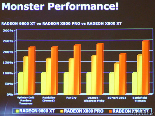 | "±«¹°°°Àº ¼º´É"À̶õ Á¦¸ñÀ» ºÙÀÏ Á¤µµ·Î Radeon X800 ½Ã¸®Áî´Â ÀÌÀü ¼¼´ëÀÇ ÇÏÀÌ¿£µå Á¦Ç°¿¡ ºñÇØ ¿ùµîÈ÷ ¶Ù¾î³ ¼º´ÉÀ»
