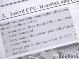 º¸ÁõÇÏ¸ç °¡±ÞÀûÀ̸é CPU¸¦ ÀÚÁÖ Àå/Å»ÂøÇÏÁö ¸»¾Æ´Þ¶ó´Â °ÍÀÌ´Ù. LGA775 ¸ÞÀκ¸µå ¼ÒÄÏÀÇ ÇÉ ¼Õ»ó¿¡ ´ëÇØ Á¦Á¶»çµéÀÌ