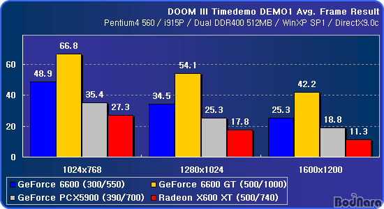 2.0À» Áö¿øÇÏ´Â HALO PCÆÇÀÇ Å¸ÀÓµ¥¸ð Å×½ºÆ® °á°ú¿¡¼µµ GeForce 6600ÀÌ ³·Àº Ŭ·°¿¡µµ ºÒ±¸Çϰí GeForce PCX