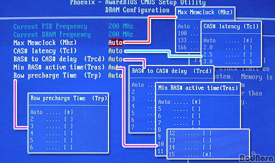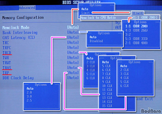 DDR200/266/333/400¿¡ ÇØ´çÇÏ´Â 4°¡Áö ¼±Åà ¸Þ´º ¿Ü¿¡ 3:2 Ç׸ñµµ Á¸ÀçÇÑ´Ù. ¸Þ¸ð¸® ŸÀÌ¹Ö ¿É¼ÇÀº CL°ªÀ» Æ÷ÇÔÇÑ ±âº»