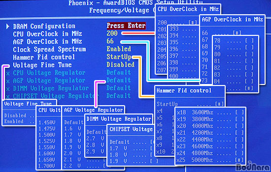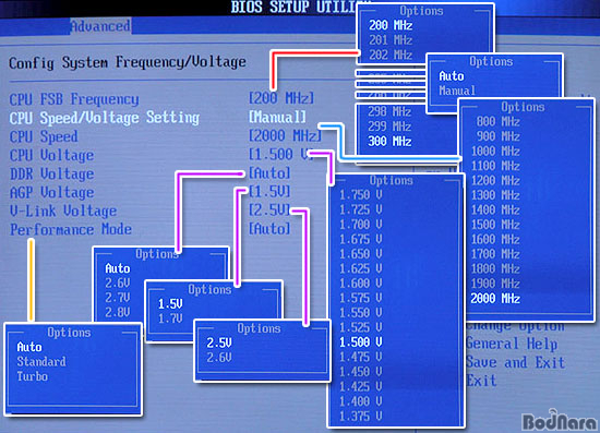 CPU Àü¾ÐÀº 1.45V~1.7V±îÁö 0.5V ´ÜÀ§, AGP Àü¾ÐÀº 1.6V~2.2V, ¸Þ¸ð¸® Àü¾ÐÀº 2.7, 2.8, 2.9VÀÇ