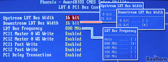 ÇØÁÖ´Â LDT&PCI Bus Configuration Ç׸ñÀÌ´Ù. ¾÷/´Ù¿î½ºÆ®¸² LDT ¹ö½º ´ë¿ª ¼³Á¤Àº 8bit / 16bit °¡¿îµ¥