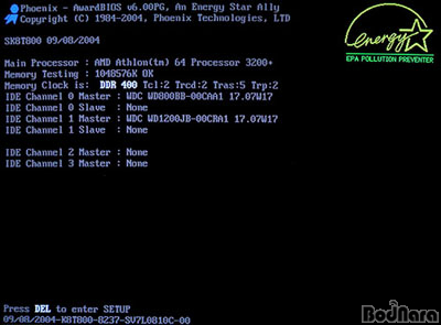 SK8T800ÀÇ Æ÷½ºÆÃ ȸéÀº ¹ÙÀÌ¿À½º ³¯Â¥ ¾Æ·¡·Î CPU Á¤º¸¿Í ¸Þ¸ð¸® ¿ë·®, ¸Þ¸ð¸® Ŭ·° ¹× ŸÀ̹Ö, IDE ÀåÄ¡ Á¤º¸ µîÀÌ