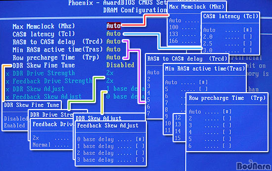 AUTO·Î ¼³Á¤ÇØ¾ß ÇÑ´Ù. CL °ªÀ» ºñ·ÔÇÑ ±âº» ¸Þ¸ð¸® ŸÀÌ¹Ö ¼³Á¤ ¸Þ´º ¿Ü¿¡ DDR Skew Fine Tune ±â´ÉÀ» »ç¿ëÇϸé Ãß°¡·Î