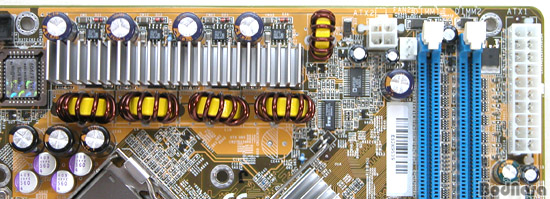 ³î¶ø°Ôµµ 4-Phase ±¸¼ºÀÌ´Ù. ijÆÐ½ÃÅÍ´Â CPU ¼ÒÄÏ ÁÖº¯À¸·Î MOSFET ¹× ÃÊÅ©ÄÚÀϰú ´Ù¼Ò °Å¸®°¡ ÀÖ´Â °÷±îÁö ºÐ»êµÇ¾î ¹èÄ¡ µÇ¾úÀ¸¸ç, ¹ß¿·®ÀÌ ¸¹Àº