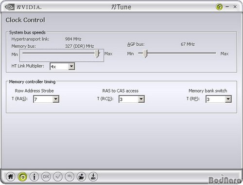 À§ÀÇ À̹ÌÁö´Â nVIDIA¿¡¼ °ø°³ÇÒ NTuneÀ̶ó´Â Æ©´× ¹× ¸ð´ÏÅ͸µ ÇÁ·Î±×·¥À¸·Î ½Ã½ºÅÛÀÇ °¢Á¾ Ŭ·°À» üũÇÑ °ÍÀε¥.. ÇÊÀÚ°¡ Å×½ºÆ®Çغ» °á°ú NF8ÀÌ Á¤»óÀûÀ¸·Î À©µµ¿ì·Î ÁøÀÔ °¡´ÉÇÑ Å¬·°Àº 1009.283Mhz¿´´Ù. ¹°·Ð Ĩ¼Â¿¡ ´õ ³ôÀº Àü¾ÐÀ» Àû¿ëÇÏ¿© ´õ ³ôÀº Ŭ·°À¸·Î µ¿ÀÛÇÏ°Ô ¸¸µé ¼öµµ ÀÖÁö¸¸ NF8ÀÌ Áö¿øÇϴ Ĩ¼Â Àü¾ÐºÎºÐÀ» ¸ðµÎ Àû¿ëÇÏ´õ¶óµµ ¿©±â±îÁö°¡ ÇѰè·Î ³ªÅ¸³µ´Ù.(Âü°í·Î ¾ÆÁ÷ Ãʱ⠹öÀüÀÌ¾î¼ ÀÎÁö ¹ÙÀÌ¿À½º»ó¿¡¼ 5¹èÀ²À» Àû¿ëÇÏ¸é Æ÷½ºÆÃÀÌ ºÒ°¡´ÉÇÏ¿´´Ù. À̺κÐÀº ¼öÁ¤ÀÌ µÉ °ÍÀ̶ó°í ÇÑ´Ù.)