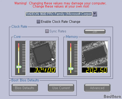 ¸ðºô¸®Æ¼ Radeon 9600ÀÇ Å¬·°Àº ¾î¶»°Ô ¼³Á¤ µÇ¾î ÀÖÀ»±î? Å×½ºÆ®ÀÇ ÆíÀǸ¦ À§ÇØ Catalyst 4.12¸¦ ±â¹ÝÀ¸·Î ÇÑ OMEGA µå¶óÀ̹ö 2.5.97a¸¦ »ç¿ëÇÏ¿´´Ù.
