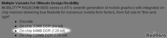 ±× ´ÙÀ½À¸·Î ±Ã±ÝÁõÀÌ »ý±â´Â ºÎºÐÀÌ ¸Þ¸ð¸® ¹ö½ºÀÌ´Ù. 64bit Á¦Ç°°ú 128bit Á¦Ç°ÀÇ ¼º´É Â÷ÀÌ´Â »ó´çÈ÷ Å©±â ¶§¹®Àε¥, ÀÏ´Ü ¸®¹ÙÆ©³Ê µîÀÇ À¯Æ¿¿¡¼­´Â ¹Ì¸® ÀúÀåµÈ Á¤º¸°¡ ¾ø±â ¶§¹®ÀÎÁö ¸®¹ÙÆ©³Ê·Î´Â Mobility Radeon 9600ÀÌ ¸î ºñÆ® ¹ö½º ±¸Á¶ÀÎÁö È®ÀÎÇÒ ¼ö ¾ø´Ù.