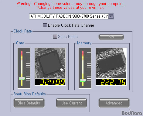 ¸ðºô¸®Æ¼ Radeon 9600ÀÇ Å¬·°Àº ÀÏ¹Ý Radeon 9600ÀÇ ·¹ÆÛ·±½º Ŭ·°º¸´Ù ¸Þ¸ð¸® Ŭ·°ÀÌ Á¶±Ý ´õ ³ô°Ô ¼³Á¤µÇ¾î ÀÖ¾ú´Ù. ÄÚ¾î 325MHz¿Í ¸Þ¸ð¸® DDR 400MHzÀÎ ·¹ÆÛ·±½º ½ºÆåº¸´Ù ¸Þ¸ð¸® Ŭ·°¸¸ ¾à 40MHz Á¤µµ ³ô´Ù.