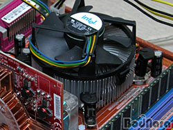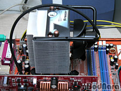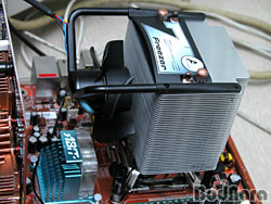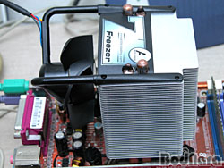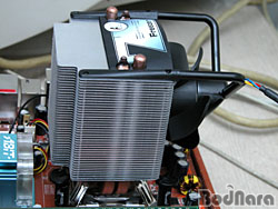 Freezer7ÀÇ ¼³Ä¡ À§Ä¡¿¡ ´ëÇÑ ºÎºÐÀ» °£´ÜÈ÷ »ìÆìº¸¾ÒÀ¸¸ç, LGA775 ¹æ½ÄÀÇ Á¤Ç° Äð·¯¿Í µ¿ÀÏÇÑ ¼³Ä¡ ¹æ¹ýÀ¸·Î º°µµÀÇ ¼³Ä¡¿¡ ´ëÇÑ ³»¿ëÀº ´Ù·çÁö ¾Ê¾Ò´Ù.