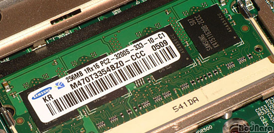 Ãß°¡ DIMM¸¸ ¾÷±×·¹À̵忡 »ç¿ëÇÒ ¼ö ÀÖ´Ù. »ùÇà Á¦Ç°¿¡´Â 256MB ¿ë·®ÀÇ ¸Þ¸ð¸®°¡ ÀåÂø µÇ¾î ÀÖ¾ú´Âµ¥, ±¸ÀԽà
