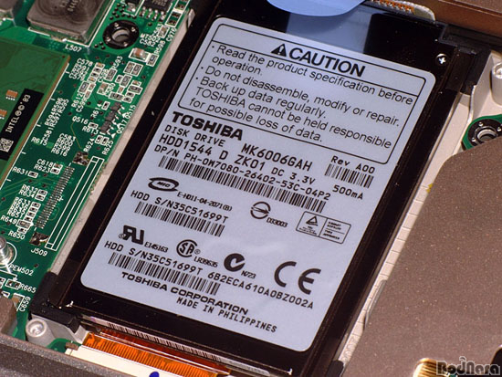 1.8ÀÎÄ¡ 4200rpm ÇÏµå µð½ºÅ©¸¦ »ç¿ëÇÏ¿´´Ù. »ùÇà Á¦Ç°¿¡´Â 60GB Á¦Ç°ÀÌ Å¾Àç µÇ¾î ÀÖ¾ú´Âµ¥, Àú»ç¾ç Á¦Ç°À»