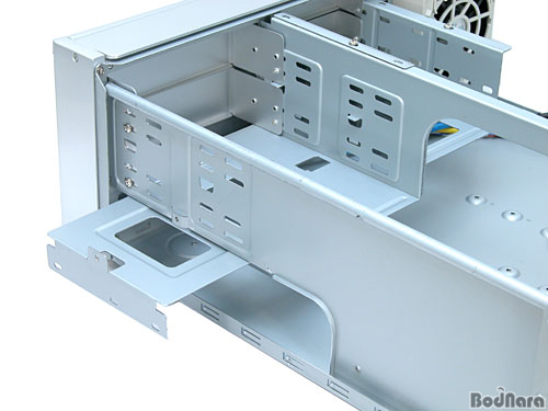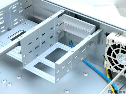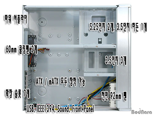 »ó´Ü¿¡ À§Ä¡ÇÑ 5.25ÀÎÄ¡ º£ÀÌ´Â ¸ðµÎ 2°³ÀÇ ÀåÄ¡¸¦ ¼³Ä¡ÇÒ ¼ö ÀÖµµ·Ï Çϰí ÀÖÀ¸¸ç, ¿ìÃøÀÇ 3.5ÀÎÄ¡ º£ÀÌ¿¡ FDD µîÀ» ¿¬°áÇϰí HDD ÀåÄ¡¸¦ Çϳª ´õ »ç¿ëÇÒ ¼ö Àִµ¥ ºÎÁ·ÇÒ °æ¿ì¸¦ ´ëºñÇÏ¿© Ãß°¡·Î ¼û°ÜÁø 3.5ÀÎÄ¡ ÀåÄ¡ ÀåÂøÀÌ °¡´ÉÇÑ º£À̸¦ Á¦°øÇϰí ÀÖ´Ù. ÁÂÃø¿¡ À§Ä¡ÇÑ °íÁ¤¿ë º¼Æ®¸¦ Ç®·¯ÁÖ¸é ½½¶óÀÌµå ¹æ½ÄÀ¸·Î ¹Ù±ùÀ¸·Î Àâ¾Æ´ç°Ü Á¦°ÅÇϰí ÀåÄ¡¸¦ ÀåÂøÇÏ¸é µÈ´Ù.