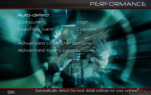 Performance¿¡´Â »ç¿ëÀÚÀÇ ½Ã½ºÅÛ¿¡ ¸Â´Â ¿É¼ÇÀ» ÀÚµ¿À¸·Î ¼³Á¤ÇØÁÖ´Â Auto-detect ¿É¼ÇÀÌ µé¾îÀÖ´Ù. ±×·¡ÇÈ ¿É¼ÇÀº Computer¿Í Graphic CardÀÇ 2°¡Áö·Î ³ª´²Á® Àִµ¥, °¢°¢ Minimum - Low - Medium - High - MaximumÀÇ 5´Ü°è·Î Á¶Á¤µÈ´Ù. Ç׸ñº° ¼¼ºÎ ¿É¼ÇÀº ¾Æ·¡¿¡ ³ª¿ÍÀÖ´Â Advanced ¿É¼Ç¿¡¼­ º¯°æÇÒ ¼ö ÀÖ´Ù.
