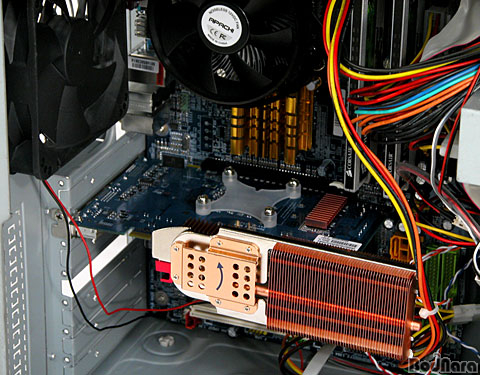 SilentCoolÀ» ÀåÂøÇÑ ASUS Extreme N6600GT Silencer/HTD¸¦ °¡Àå ÁÁÀº È¿À²À» º¸ÀÌ´Â 90µµ °¢µµ·Î ¼³Á¤ÇÑ °æ¿ì¿Í SLI ¸ðµå µîÀ» »ç¿ëÇÒ °æ¿ì ¾î¿ ¼ö ¾øÀÌ ¼öÆòÀ¸·Î ¼³Ä¡ÇÒ ¼ö ¹Û¿¡´Â ¾ø´Â °æ¿ì¸¦ °¡Á¤ÇÏ¿© °¢°¢ÀÇ GPU ¿Âµµ¿Í À̶§ÀÇ CPUÀÇ ¿Âµµ º¯È­¸¦ ÇÔ²² ºñ±³ÇÏ¿© º¸¾Ò´Ù.
