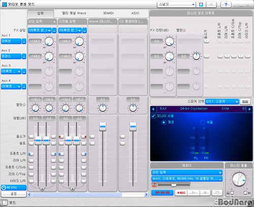ÀÌ °ÍÀº ¿Àµð¿ÀÅ©¸®¿¡ÀÌ¼Ç ¸ðµåÀÇ ¹Í¼­ÀÌ´Ù. À½¾Ç ÀÛ¾÷À» ÇÏ´Â »ç¶÷¿¡°Ô´Â ¼¼ºÐÈ­µÈ ¸ÖƼä³Î ¹Í¼­°¡ Àͼ÷ÇϰÚÁö¸¸, °ú¿¬ °ÔÀ̸ӵéÀÌ ÀÌ·¯ÇÑ ¸Þ´º¿¡ ÀûÀÀÇÒ ¼ö ÀÖÀ»±î? ¿ëµµ¿¡ ¸ÂÃç ÃÖÀûÈ­µÈ ÄÜ¼Ö ÀÎÅÍÆäÀ̽º°¡ ÀÖ´Â ÆíÀÌ »ç¿ëÇÏ±â Æí¸®ÇÏ´Ù. À§ÀÇ ¿Àµð¿À Å©¸®¿¡ÀÌ¼Ç ¸ðµå¿¡¼­´Â 1ms·Î ÇÑÃþ ³·¾ÆÁø ³·Àº ·¹ÀÌÅϽø¦ Áö¿øÇÏ´Â ASIO ±â´É°ú MIDI À½¿ø¿¡ ÀÔü À½Àå°¨À» ¸¸µé¾îÁÖ´Â 3D MIDI µîÀÇ Àü¿ë ±â´ÉÀ» »ç¿ëÇÒ ¼ö ÀÖÀ¸¸ç, »ùÇøµ·¹ÀÌÆ® º¯È¯À̳ª À½¿ø ÀÔÃâ·Â ·¹ÀÌÅϽø¦ ³·Ãß´Â µîÀÇ ÀÛ¾÷¿¡ DSPÀÇ ´É·ÂÀ» ÁýÁßÇÏ°Ô µÈ´Ù.