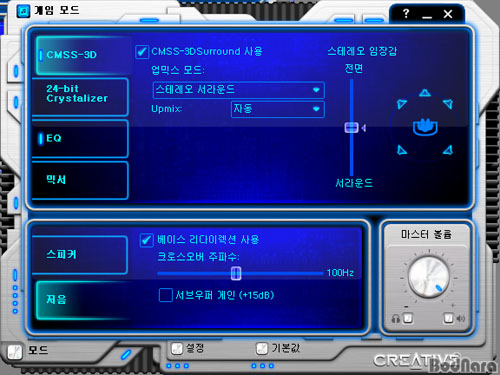 À̹ø¿¡´Â °ÔÀÓ ¸ðµåÀÇ ÄÜ¼Ö ÀÎÅÍÆäÀ̽ºÀε¥, 2ä³Î À½¿øÀ» ¼­¶ó¿îµå À½Àå°¨ÀÌ ´À²¸Áöµµ·Ï ´Ùä³Î ¼Ò½º·Î ¾÷¹Í½º ÇØÁÖ´Â CMSS-3D ±â´ÉÀÌ Á¦°øµÈ´Ù. CMSS-3D´Â 2ä³Î -> 5.1ä³Î·ÎÀÇ ¾÷¹Í½º¸¸ Áö¿øÇÏ´Â °ÍÀÌ ¾Æ´Ï¶ó ÇìµåÆùÀ» »ç¿ëÇÒ ¶§ 2ä³Î ÇìµåÆù¿¡¼­µµ º¸´Ù °ø°£°¨ÀÌ ´À²¸Áöµµ·Ï ¸¸µé¾îÁÖ´Â ¿ªÇÒµµ ÇÑ´Ù. °ÔÀÌ¹Ö ¸ðµå´Â EAX µîÀÇ ±â´É Áö¿ø°ú °ÔÀÓ °¡¼Ó ´É·Â¿¡ ÃÖÀûÈ­ µÇ¾î ÀÖ´Ù.