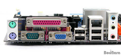 ¹éÆÐ³Î ±¸¼ºÀº PS/2 Æ÷Æ®¿Í ÆÐ·¯·¼/½Ã¸®¾ó/D-USB Ãâ·Â ´ÜÀÚ, USB 2.0 Æ÷Æ® 4°³, ·£ Æ÷Æ®, ¾Æ³¯·Î±× »ç¿îµå ´ÜÀÚ·Î ±¸¼ºµÇ¾î ÀÖ´Ù. Ãß°¡·Î TV-Out ºê¶óÄÏÀ» ´Þ¾Æ ³»Àå ±×·¡ÇÈ ÀÇ TV-Out Ãâ·Â ±â´Éµµ »ç¿ë °¡´ÉÇÏ´Ù.
