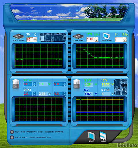 Hardware Monitor Utility´Â ¸» ±×´ë·Î Çϵå¿þ¾î¿¡¼­ ÀνĵǴ Àü¾Ð°ú ¿Âµµ µîÀÇ °ªÀ» »ç¿ëµÈ I/O Ĩ¼Â¿¡¼­ Á¤º¸¸¦ ºÒ·¯¿Í Ç¥±âÇØÁÖ´Â ÇÁ·Î±×·¥ÀÌ´Ù. ¿©±â¼­´Â CPUÀÇ ¿Âµµ¿Í CPU ÆÒÀÇ ¼Óµµ, CPU Àü¾Ð, ¹èÅ͸® Àü¾Ð, 3.3V, 12V, 5V µîÀÇ Àü¾Ð °ªÀ» ÃøÁ¤ÇØÁØ´Ù.