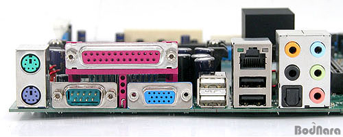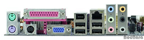 GeForce 6150 ·¹ÆÛ·±½º º¸µåÀÇ ¹éÆÐ³ÎÀº PS/2 Æ÷Æ®¿Í ½Ã¸®¾ó, ÆÐ·¯·¼ Æ÷Æ®, ¸ð´ÏÅÍ ¿¬°áÀ» À§ÇÑ D-SUB ´ÜÀÚ, 4°³ÀÇ USB 2.0 Æ÷Æ®, ·£ Æ÷Æ®, SPDIF ±¤ Ãâ·Â ´ÜÀÚ¸¦ Æ÷ÇÔÇÑ ¾Æ³¯·Î±× »ç¿îµå ´ÜÀÚ·Î ±¸¼ºµÇ¾î ÀÖ´Ù. ÇÏÁö¸¸ GeForce 6150Àº D-SUB ´ÜÀÚ ´ë½Å DVI Ãâ·Â ´ÜÀÚ¸¦ »ç¿ëÇÒ ¼öµµ ÀÖ´Ù.