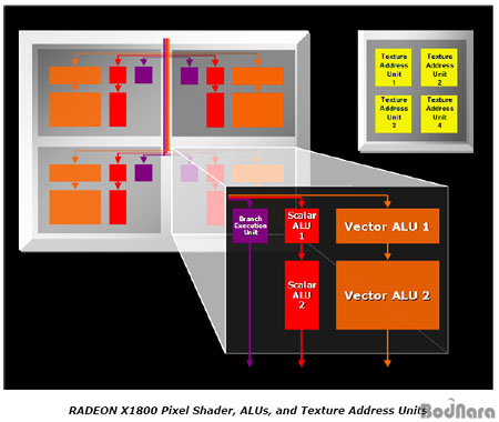 ÅØ½ºÃÄ ÁÖ¼Ò À¯´Ö°ú ÅØ½ºÃÄ À¯´ÖÀº ±âÁ¸ ¼¼´ëÀÇ GPU¿Í ´Þ¸® Shader ¿¬»ê ÄÚ¾î ³»ºÎ¿¡ Æ÷ÇÔµÇÁö ¾Ê°í ¿ÜºÎ·Î ºÐ¸®µÇ¾î ÀÖ´Â ¹æ½ÄÀÌ »ç¿ëµÇ°í ÀÖ¾î Shader ¿¬»ê°ú ÅØ½ºÃÄ Ã³¸®¿¡ ´ëÇÑ ¿¬»êÀ» µ¿½Ã¿¡ ó¸®ÇÒ ¼ö°¡ ÀÖ´Ù. R520 GPUÀÇ °æ¿ì Pixel Shader À¯´Ö°ú µ¿ÀÏÇÑ °¹¼öÀÇ ÅØ½ºÃÄ ÁÖ¼Ò À¯´Ö°ú ÅݽºÃÄ À¯´ÖÀÌ ÀåÂøµÇ¾î ÀÖ´Ù.