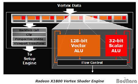 ATI R5xx GPUµéÀº ÀÌ¹Ì ¾ð±ÞÇÏ¿´µíÀÌ Vertex Shader¿Í Pixel Shader°¡ ³ª´©¾îÁø ¹æ½ÄÀÌ´Ù. ÀÌÁß Vertex Shader´Â ÀÌÀü ÆäÀÌÁö¿¡¼­ ºí·Ï À̹ÌÁö¸¦ ÅëÇØ È®ÀÎÇÒ ¼ö ÀÖ¾úµíÀÌ R4xx ¼¼´ëÀÇ GPUµé°ú ºñ±³Çغ»´Ù¸é µÎ °³ÀÇ Vertex Shader ¿¬»ê À¯´ÖÀÌ Áõ°¡ÇÑ 8°³ÀÇ Vertex Shader ¿¬»ê À¯´ÖÀÌ ÀåÂøµÇ¾î ÀÖ´Ù.