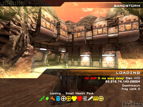 ¸ÖƼ Ç÷¹À̸¦ À§ÇØ ¼­¹ö¿¡ Á¢¼ÓÇϰí ÀÖ´Â Àå¸é. ·Îµù¿¡ µû¶ó ÇÏ´Ü¿¡ ¾ÆÀÌÄÜÀÌ »ý±â´Â ¸ð½ÀÀÌ Quake3ÀÇ ¸ÖƼ Ç÷¹ÀÌ¿Í ¶È°°´Ù.