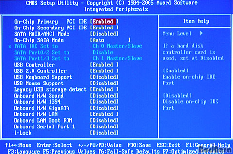 Integrated Peripherals¿¡¼´Â ¿Âº¸µå·Î Á¦°øµÇ´Â ÀåÄ¡µéÀÇ »ç¿ë ¿©ºÎ¸¦ ¼±ÅÃÇÒ ¼ö