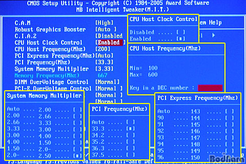 Frequency(Mhz), PCI Frequency(Mhz), System Memory MultiplierÀÇ ¼¼°¡Áö¸¦