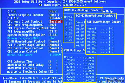 ¿©±â¿¡ Ãß°¡·Î 0.1V ´ÜÀ§·Î Áõ°¡ÇÑ´Ù. FSB OverVoltage´Â ±âº»ÀÎ Normal¿¡¼ ºÎÅÍ +0.05V ´ÜÀ§·Î