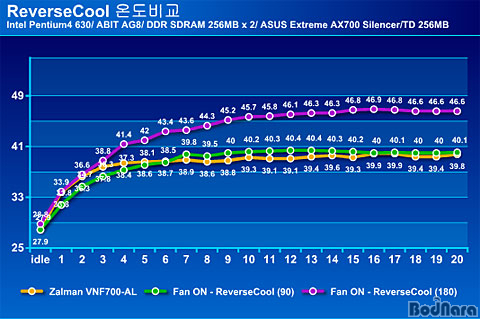 Silencer¸¦ ÀåÂøÇÑ ASUS Extreme AX700 Silencer/TD 256MB°¡ °¡Àå ÁÁÀº È¿À²À» º¸ÀÌ´Â 90µµ