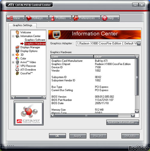 ATI Catalyst 5.13 Á¤½Ä ¹öÀüÀ» ¼³Ä¡Çϰí Catalyst Control Center¿¡ µé¾î°¡¸é Radeon X1800 Cross Fire EditionÀ̶ó´Â À̸§À¸·Î Master Ä«µåÀÇ Á¤º¸¸¦ º¼ ¼ö ÀÖ´Ù. ´Ù¸¸, º¸µå³ª¶ó¿¡ Á¦°øµÈ Radeon X1800 XT Cross Fire¿ë Master Ä«µå´Â Device ID ³Ñ¹ö°¡ µå¶óÀ̹ö¿¡¼ Áö¿øÇÏ´Â °Í°ú ´Þ¶ó ±×·¡ÇÈ Ä«µå¸¦ ãÁö ¸øÇØ µå¶óÀ̹ö¸¦ ¼öµ¿À¸·Î °Á¦ ¼³Ä¡ÇØ¾ß ÀνÄÇÏ´Â ¹®Á¦°¡ ÀÖ¾ú´Ù.