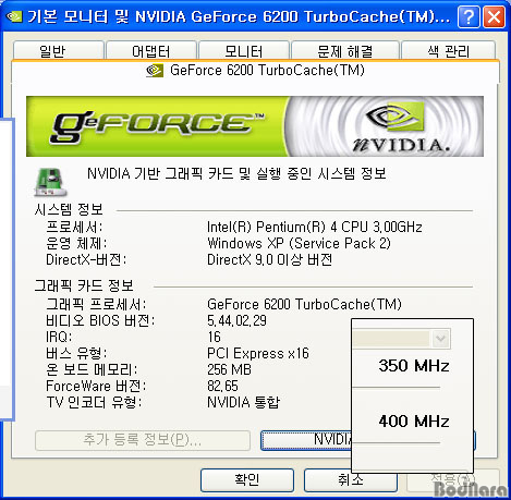 GeForce 6200 TC¿Í 6500Àº ¾ÆÅ°ÅØÃÄ´Â °°Áö¸¸ µ¿ÀÛ Å¬·°°ú »ç¿ëµÈ ¸Þ¸ð¸®ÀÇ ¾çÀÌ ´Ù¸¦ »ÓÀε¥, ÃÖ±Ù¿¡´Â 16MB, 32MB¸¦ ¾²´Â 6200 TC´Â ´ÜÁ¾µÇ°í 128MBÂ¥¸® Á¦Ç°µéÀÌ ³ª¿À¸é¼ »ç½Ç»ó GeForce 6500°ú´Â µ¿ÀÛ Å¬·°¸¸ Â÷À̰¡ ³ª°í ÀÖ´Ù. ½Ã½ºÅÛ ¸Þ¸ð¸®¸¦ °¡Á®¿Í¼ 256MB Á¦Ç°Ã³·³ µ¿ÀÛÇÒ ¼ö ÀÖ´Ù.