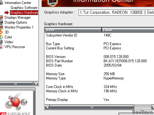 Radeon X300 SE H/Mµµ 64bit ¸Þ¸ð¸® ÀÎÅÍÆäÀ̽º¸¦ °¡Áø X300 SE¿¡ Turbo Cache¿Í °°Àº °³³äÀÎ Hyper Memory ±â´ÉÀ» ³Ö¾î ½Ã½ºÅÛ ¸Þ¸ð¸®¸¦ ²ø¾î´Ù ¾´´Ù. ±×·¡ÇÈ Ä«µå ¸Þ¸ð¸®´Â 128MBÁö¸¸ ½Ã½ºÅÛ ¸Þ¸ð¸®¸¦ ²ø¾î´Ù 256MB Á¦Ç°Ã³·³ µ¿ÀÛÇÒ ¼ö ÀÖ´Ù.