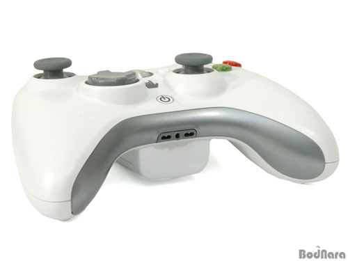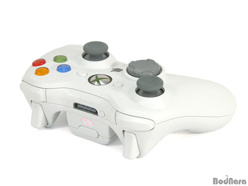 XBOX 360 ÄÁÆ®·Ñ·¯´Â ¹öư ¹èÄ¡°¡ ¹Ù²î¾î ±âÁ¸ÀÇ 4¹öư ¾Æ·§ÂÊ¿¡ ÀÖ´ø ÀÛÀº Èò»ö/°ËÁ¤»ö ¹öưÀÌ Æ®¸®°Å À§ÂÊÀ¸·Î ¿Å°ÜÁ® ¼Ò´ÏÀÇ Ç÷¹À̽ºÅ×ÀÌ¼Ç ÄÁÆ®·Ñ·¯Ã³·³ L1, L2, R1, R2ÀÇ ÇüŰ¡ µÇ¾ú´Ù. ÄÁÆ®·Ñ·¯¿¡ ÀÖ´ø ¸Þ¸ð¸® À¯´Ö ½½·Ô ¿ª½Ã º»Ã¼·Î ¿Å°ÜÁö¸é¼­ ¹«¼± Á¦Ç°¿¡´Â Ç÷¹ÀÌ&Â÷Áö Ŷ ¿¬°áÀ» À§ÇÑ Æ÷Æ®°¡ ±× ÀÚ¸®¸¦ ´ë½ÅÇÑ´Ù. Æ÷Æ® ¿·¿¡´Â Á¶±×¸¸ ¹«¼± ¿¬°á ¸®¼Â ¹öưÀÌ ºÙ¾îÀÖ´Ù.