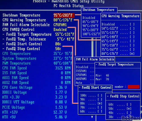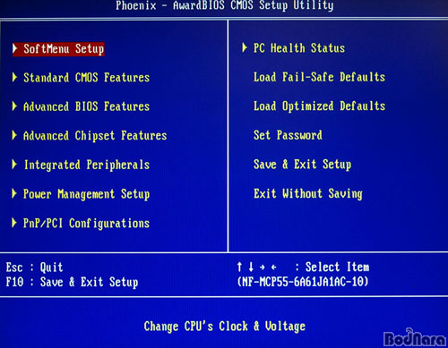 ABIT KN9 SLIÀÇ ¹ÙÀÌ¿À½º È­¸éÀº ±âÁ¸ÀÇ ABIT ¸ÞÀκ¸µåÀÇ ¹ÙÀÌ¿À½º ±¸¼º°ú µ¿ÀÏÇÏ´Ù. Guru Ĩ¼ÂÀÌ µé¾î°£ ¸ÞÀκ¸µå´Â ¿À¹öŬ·°°ú ¸ð´ÏÅ͸µ ±â´ÉÀÌ uGuru Utility Ç׸ñÀ¸·Î Á¸ÀçÇÏÁö¸¸, Guru Ĩ¼ÂÀÌ ºüÁø ¸ÞÀκ¸µåµéÀº SoftMenu SetupÀ̶ó´Â À̸§À¸·Î ¿À¹öŬ·° ¿É¼Ç¸¸ ¸ð¾Æ³õ°í ¸ð´ÏÅ͸µ ±â´ÉÀº ´Ù¸¥ ¸ÞÀκ¸µåµéó·³ PC Health Status Ç׸ñ¿¡¼­ ´ã´çÇÑ´Ù.