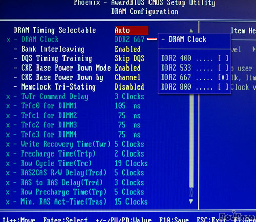 ¸Þ¸ð¸® ¼ÂÆÃ Ç׸ñÀÎ DRAM ConfigurationÀº ´Ù¸¥ nForce ¸ÞÀκ¸µåµé°ú ¸¶Âù°¡Áö·Î ±âº» ¸Þ¸ð¸® ŸÀÌ¹Ö ¿Ü¿¡ ´Ù¾çÇÑ ¿É¼ÇÀ» º¯°æÇÒ ¼ö ÀÖµµ·Ï »ó´çÇÑ ¼ýÀÚÀÇ ¸®½ºÆ®¸¦ °¡Áö°í ÀÖ´Ù. DRAM ClockÀº DDR2-800/667/533/400À» Áö¿øÇÑ´Ù.