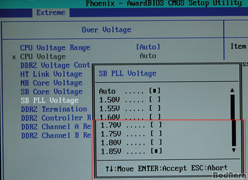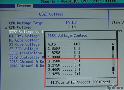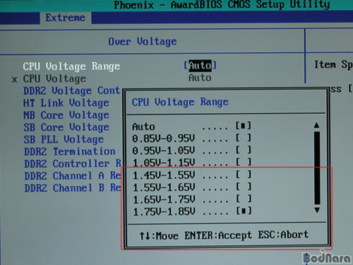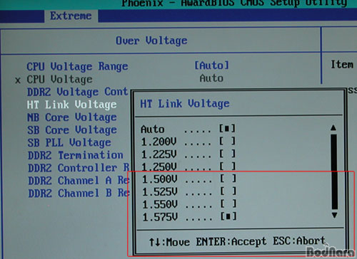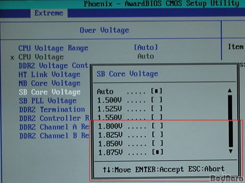 CPU Àü¾ÐÁ¶ÀýÀº 0.85V ~ 1.85V±îÁö, ¸Þ¸ð¸®´Â 1.850V ~ 3.425V±îÁö °¡´ÉÇÏ¸ç ±×¿Ü HT Link, ³ë½ººê¸´Áö, »ç¿ì½ººê¸´Áö, SB PLL ¿ª½Ã Àü¾ÐÁ¶ÀýÀÌ °¡´ÉÇÏ´Ù.