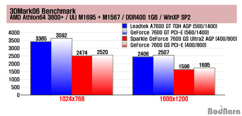 3. Sparkle GeForce 7600 GS Ultra2 256MB AGP 4. ¼º´É Å×½ºÆ® - PCI Express VS AGP