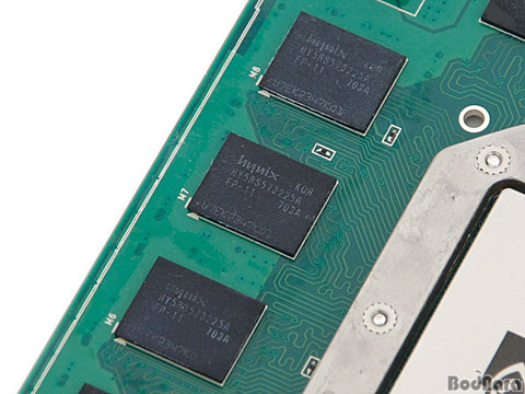»ç¿ëµÇ´Â ¸Þ¸ð¸®´Â HynixÀÇ 1.1ns·Î µ¿ÀÛÇÏ´Â GDDR3 SDRAMÀ¸·Î Àü¸é¿¡ G80 Äھ µÑ·¯½Î°í ÀÖ´Â ¸ð½ÀÀ» Çϰí ÀÖ°í 640MB¿Í ¸¶Âù°¡Áö·Î 2°³ÀÇ ¸Þ¸ð¸® Ĩ ÀÚ¸®´Â ºñ¾îÀÖ´Ù. ¶ÇÇÑ, ¾Õ¼­ ¾ð±ÞÇÏ¿´µíÀÌ ±×·ì´ç 8Mx32ÀÇ ¸Þ¸ð¸® Ĩ 2°³·Î 64bit¸¦ ±¸¼ºÇϸç, ¸Þ¸ð¸® ĨÀ» ¸ðµÎ 10°³¸¦ »ç¿ëÇÏ¿© ÃÑ 320MBÀÇ ¿ë·®À» Á¦°øÇÑ´Ù. ±×·¯³ª, ¸Þ¸ð¸® ÀÎÅÍÆäÀ̽º´Â GPU¿ÍÀÇ ±¸¼º »ó ±âÁ¸°ú °°ÀÌ 256MB³ª 512MB¸¦ ±¸¼ºÇÏ°Ô µÈ´Ù¸é ¸Þ¸ð¸® ÀÎÅÍÆäÀ̽º°¡ ÁÙ¾îµé ¼ö ¹Û¿¡ ¾ø¾î ¼º´ÉÀÇ ÀúÇÏ´Â ¸·À» ¼ö ¾ø´Ù.
