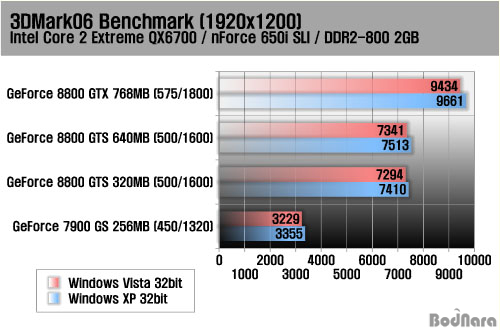 GeForce 8800 ½Ã¸®Áî, ºñ½ºÅ¸ vs XP ¼º´Éºñ±³