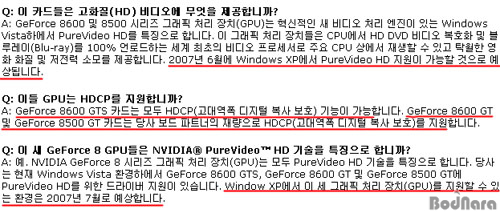 NVIDIA ÄÚ¸®¾Æ ȨÆäÀÌÁö¿¡ ÀÖ´Â GeForce 8600/8500 ½Ã¸®ÁîÀÇ FAQ°¡ ¹Ù·Î PureVideo HDÀÇ Çö½ÇÀ» ±×´ë·Î º¸¿©ÁÖ°í ÀÖ´Ù.