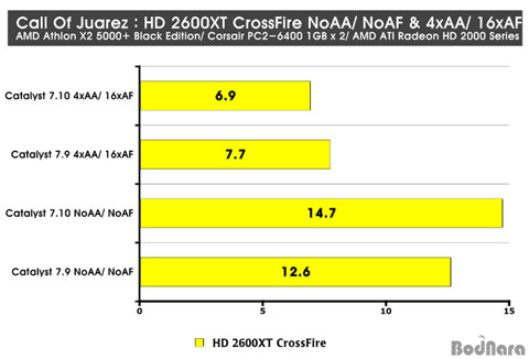 ÇÏÁö¸¸, ½ÇÁ¦ Å×½ºÆ® °á°ú¿¡¼­´Â CrossFire¸¦ ±¸¼ºÇϰí AA/ AF¸¦ Àû¿ëÇÏÁö ¾Ê¾ÒÀ» ¶§´Â 16.66%·Î ¾à 17%¿¡ °¡±î¿î ¼º´É Çâ»óÀ» º¸¿´Áö¸¸, AA/ AF¸¦ Àû¿ëÇÏ¿´À» ¶§´Â ¿ÀÈ÷·Á -10.39%·Î ¼º´ÉÀÌ Ç϶ôµÇ´Â °á°ú¸¦ º¸¿©ÁÖ¾ú´Ù. ¾Õ¼­ÀÇ Company Of Heroes¿Í ¸¶Âù°¡Áö·Î ¾ð±ÞÇϰí ÀÖ´Â ÃÖ´ëÀÇ ¼º´É Çâ»ó ¼öÄ¡¿¡ ¸ðµÎ ±ÙÁ¢ÇÏÁö ¸øÇÏ´Â ¼º´É Çâ»óÀ» º¸¿´´Ù°í º¼ ¼ö ÀÖ´Ù.
