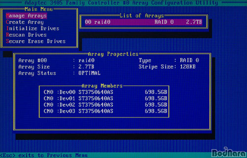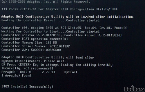 ¡ã Adaptec ASR-3405´Â ÄÁÆ®·Ñ(CRTL)+A Ű·Î ¹ÙÀÌ¿À½º ¸Þ´º¿¡ µé¾î°£´Ù
