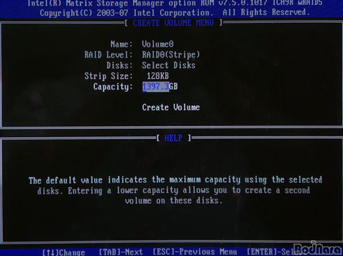 RAID ¼³Á¤(Create RAID Volume) ¸Þ´º¿¡ µé¾î°¡¸é