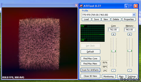 ATI Catalyst 7.11 µå¶óÀ̹öÀÇ ATI Overdrive ¿É¼ÇÀ¸·Î Auto-TuneÀ» »ç¿ëÇÑ °á°ú ÄÚ¾î 735/ 950MHz·Î ³ªÅ¸³ª ´õ ³ôÀº Ŭ·°ÀÇ Àû¿ëÀ» À§ÇØ ATITool 0.27beta 4 ¹öÀüÀ» ÀÌ¿ëÇÏ¿© Ãß°¡ ¿À¹öŬ·°À» ÁøÇàÇÏ¿´´Ù.