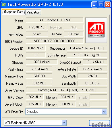 [GeCube HD 3850 512MB OC : ÄÚ¾î 775/ ¸Þ¸ð¸® 1940MHz]