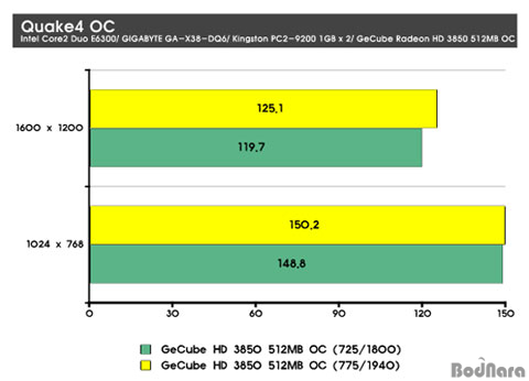GeCube HD 3850 X-Turbo III OC Edition DDR3 512MBÀÇ ±âº» ÄÚ¾î 725/ ¸Þ¸ð¸® 1800MHz¿¡¼­ À̺¸´Ù ³ôÀº ÄÚ¾î 775/ 1940(970)MHz¸¦ Àû¿ëÇÏ¿´À» ¶§ÀÇ ¼º´ÉÀ» °£´ÜÈ÷ 3DMark06°ú Quake4¸¦ ÅëÇØ »ìÆìº¸¾Ò´Ù.