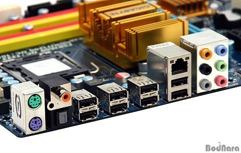 ¹éÆÐ³ÎÀÇ ±¸¼ºÀº ÁÂÃø¿¡´Â PS/2 Űº¸µå ¹× ¸¶¿ì½º Æ÷Æ®°¡ À§Ä¡Çϰí ÀÖÀ¸¸ç ±× ¿·À¸·Î´Â S/PDIF Ãâ·ÂÀ» À§ÇÑ ÄÚ¿¢½Ã¾ó/¿ÉƼÄà ´ÜÀÚ°¡ ¸¶·ÃµÇ¾î ÀÖ´Ù. À̹ۿ¡ 8°³ÀÇ USB 2.0 Æ÷Æ® ¹× RJ-45 LAN Æ÷Æ®, ±×¸®°í ¾Æ³¯·Î±× »ç¿îµå ´ÜÀÚµîÀ¸·Î ±¸¼ºµÇ¾î ÀÖ´Ù.